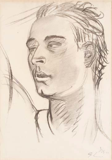 ELISABETH CHAPLIN Fontainebleau 1890 – Firenze 1982 TESTA VIRILE matita su carta, cm 49,9x35,7. Firmato in basso a destra: E. Chaplin. Provenienza: Milano, La Portantina Grafica antica