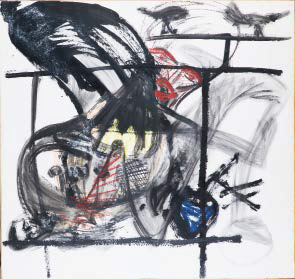 MARTIN DISLER Seewen 1949 - Ginevra 1996 SENZA TITOLO, 1981 tecnica mista su tela, cm 198x200.. Firmato e datato in basso a destra: Disler 81