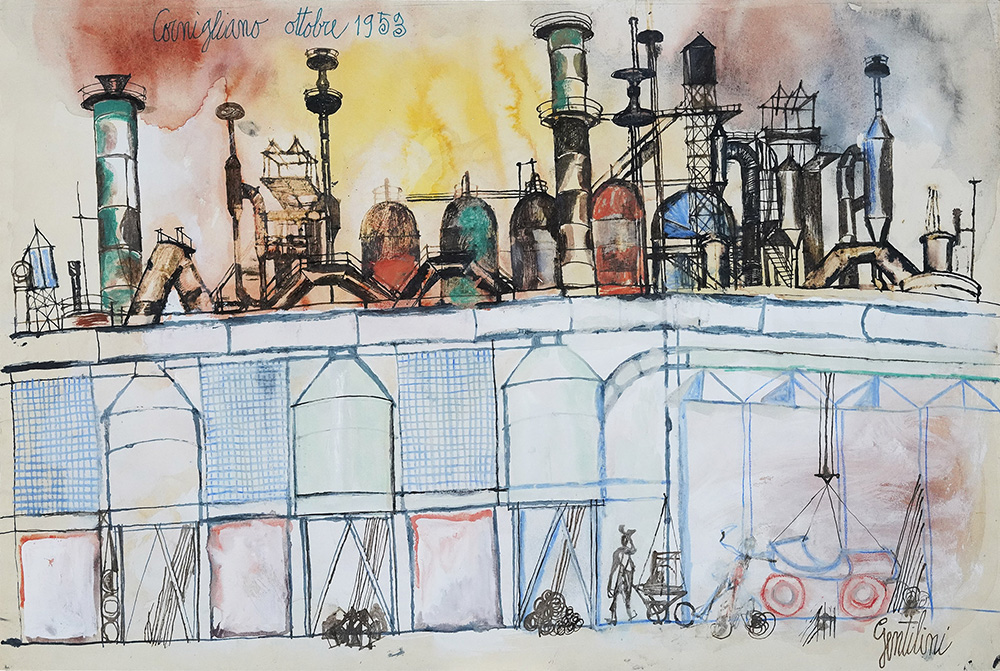 Franco Gentilini Cornigliano 1953 Acquarello su carta 33 x 48 cm Firmato in basso a destra Luogo e data in alto a sinistra