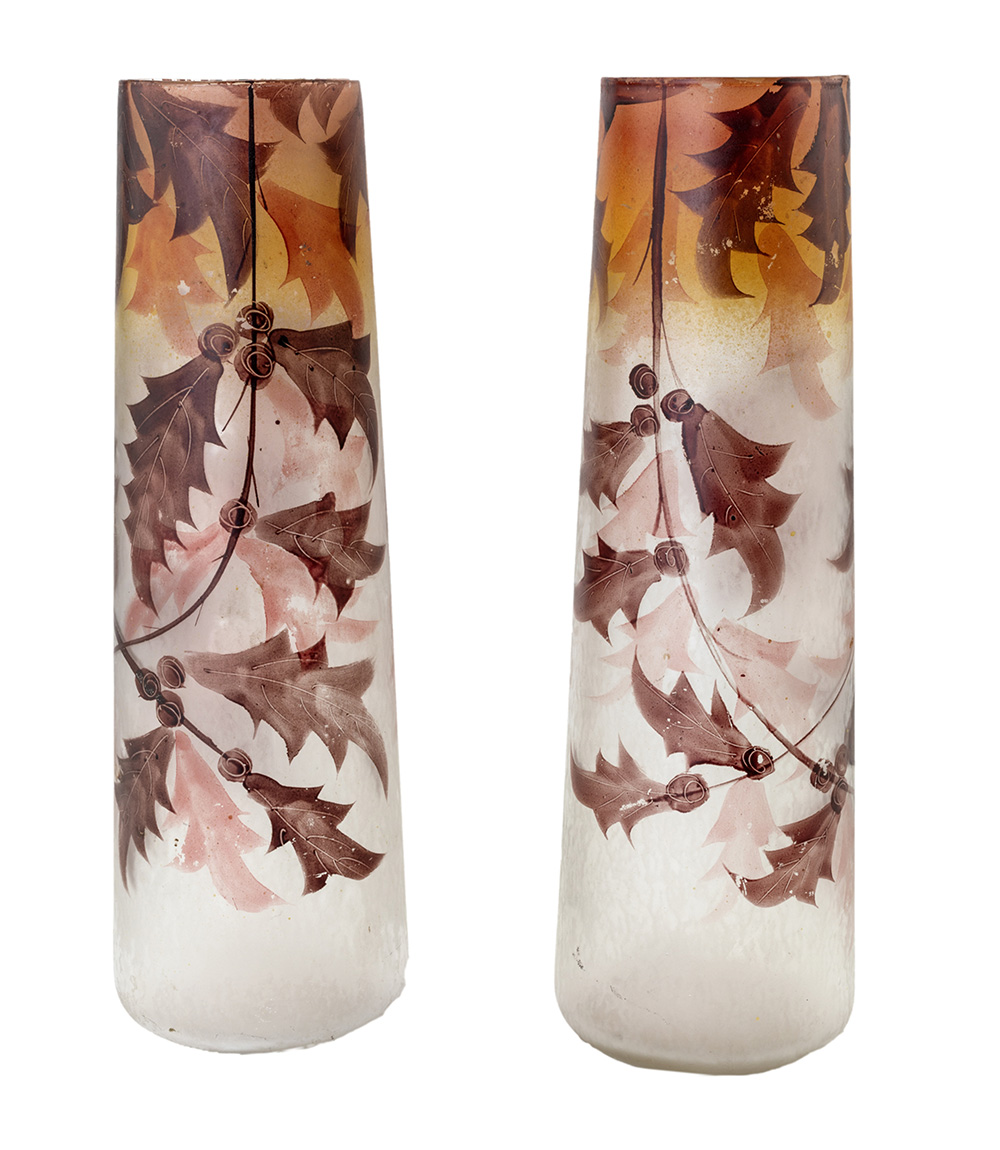 PRODUZIONE FRANCIA XX SECOLO COPPIA DI VASI in vetro soffiato con decoro...