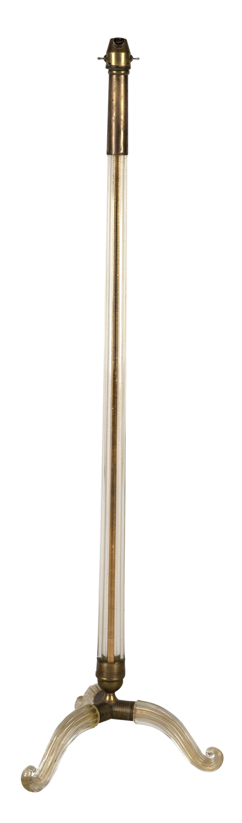 SEGUSO MURANO ITALIA1940 ca. LAMPADA DA TERRA in vetro sommerso con foglia d'oro base formata da tre piedi, raccordi in ottone. altezza cm 160x45
