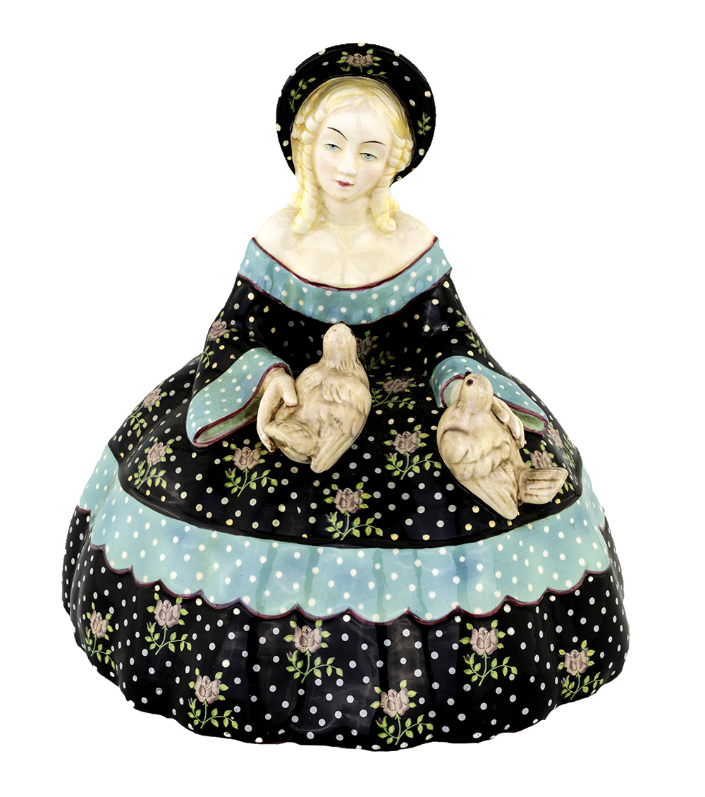 LENCI TORINO 1940 ca. DAMINA DEL SETTECENTO con in mano due colombe in...