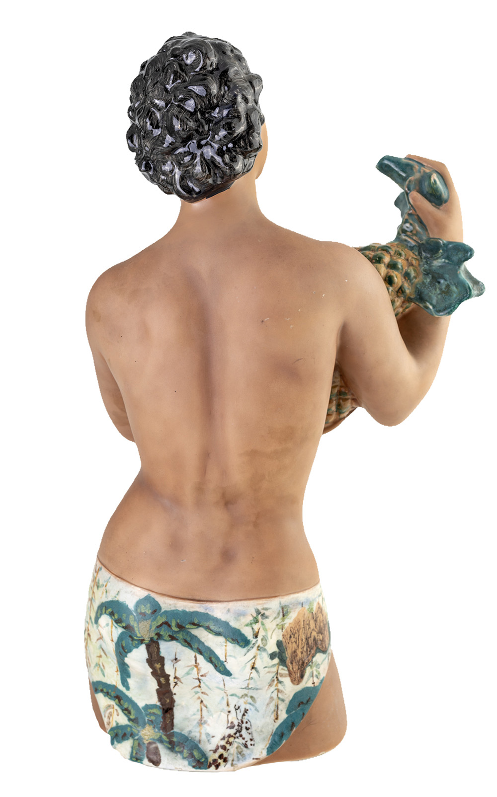 LE BERTETTI TORINO 1950 ca. "MORENA" figura di donna a seno nudo con ananas in mano terraglia a colaggio, dipinta a mano, decoro policromo. Firma sotto la base: con numerazione 165 altezza cm 50