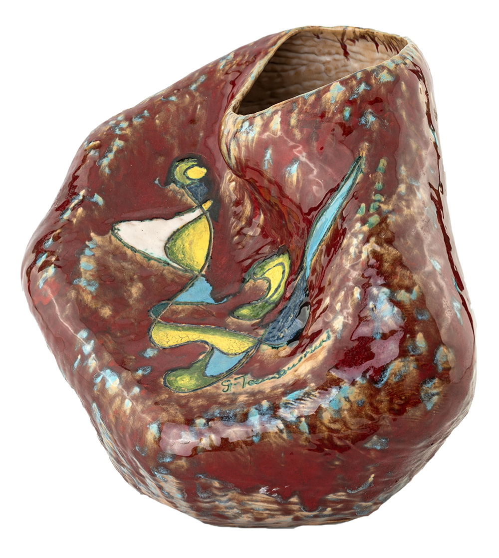 FAENZA VASO informale in terracotta smaltata, decoro policromo. Produzione...