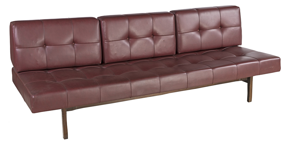 GIANFRANCO FRATTINI 1958 DIVANO mod 881 struttura in legno, imbottitura in similpelle, prod. Cassina cm 81x200x71. Bibliografia G. Gramigna, pg 118