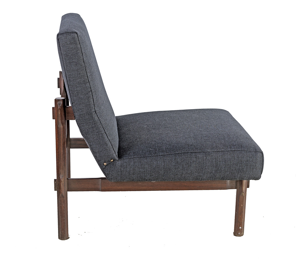 ICO PARISI E LUISA PARISI 1960 POLTRONCINA mod. 869, struttura in in rosewood e imbottitura in tessuto acrilico, mobili per l'Hotel Lorena Grosseto, prod. Cassina, cm 81x63x80