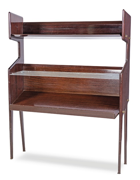 ICO PARISI 1955 LIBRERIA mod 459 per Angelo de Baggis Cantù, struttura in mogano,ripiani e una mensola in vetro (Catalogue raisonné Roberta Lietti), cm 127x98x37