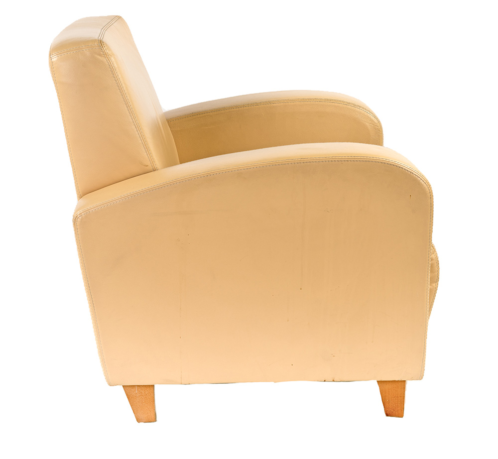 PRODUZIONE ITALIANA 1980 COPPIA DI POLTRONE struttura in legno, rivestimento in pelle, riproduzione modello Frau anni 40, cm 80x80x70.