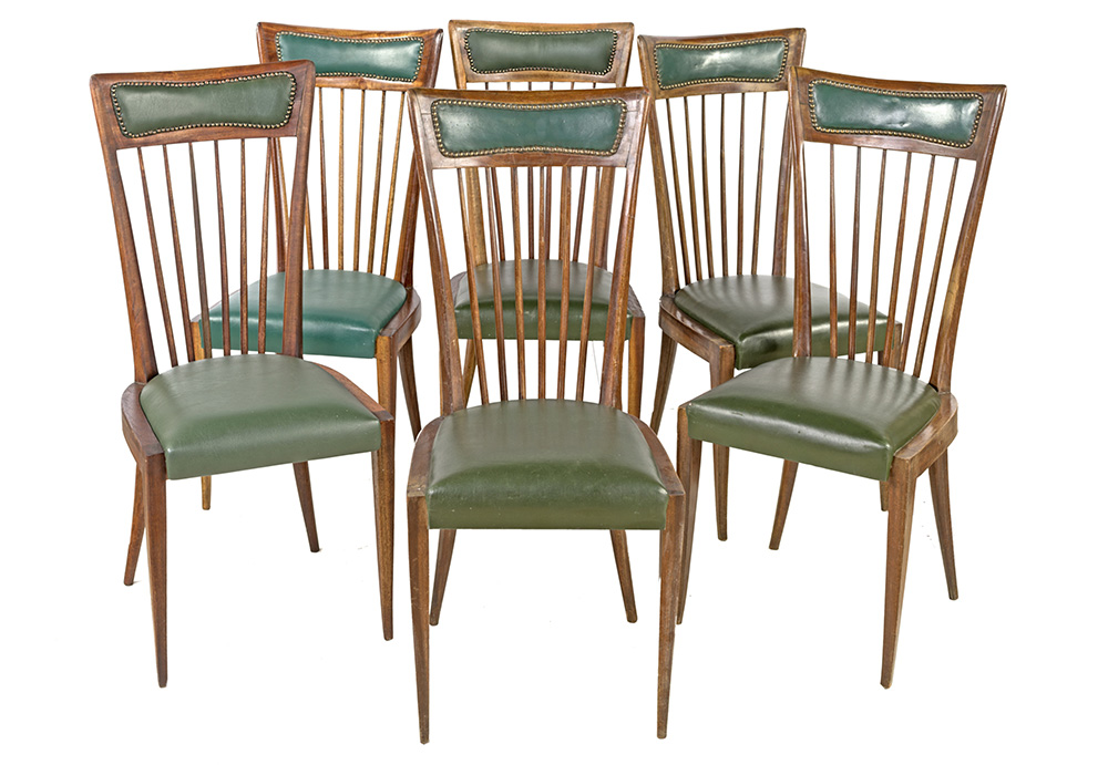 PAOLO BUFFA (Attr.) 1940 SEDIE in mogano rivestimento in similpelle.quantita' 6 Prod. italia cm 103x50x50. Segni di usura