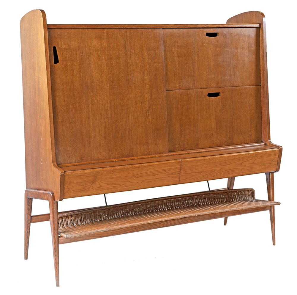 FRANCIA 1950 ca. MOBILE CONTENITORE mobile contenitore con cassetti e sportelli, alla base ripiano in Rattan, (attr Gerard Guermonprez) Prod. Francia
