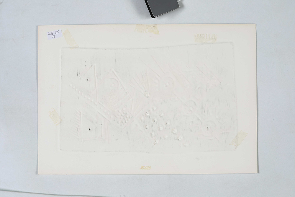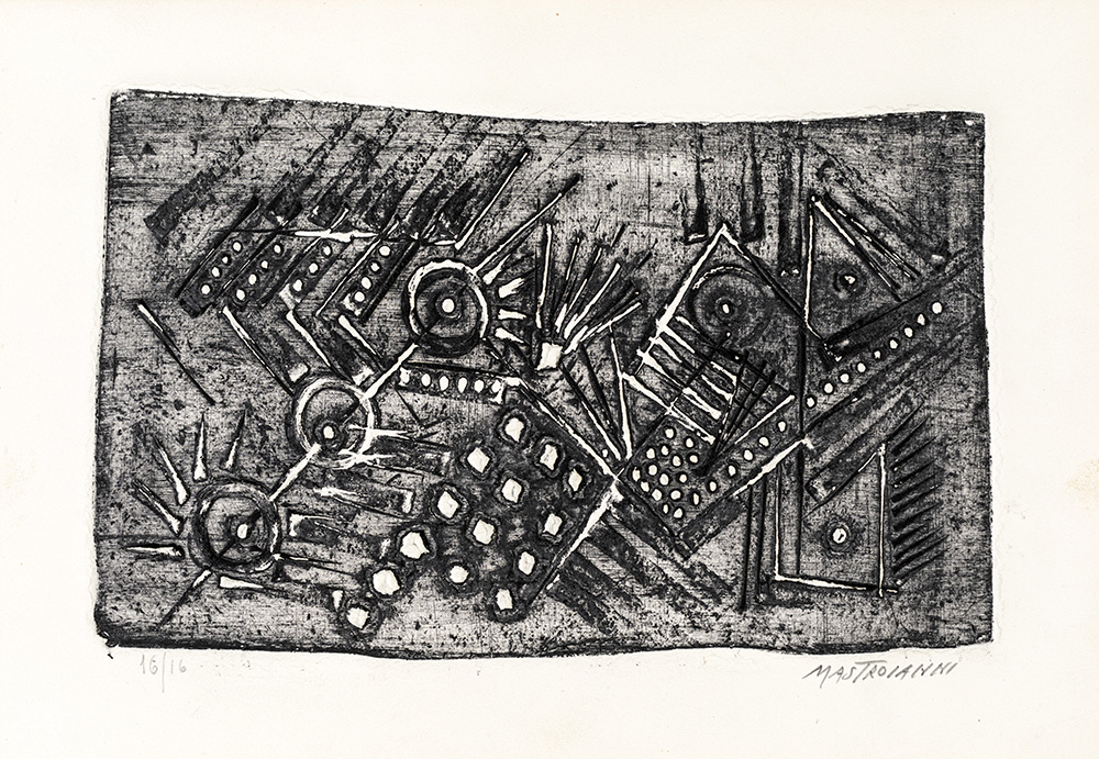 UMBERTO MASTROIANNI (Fontana Liri 1910-Marino 1998) COMPOSIZIONE incisione, cm 27.5x40. Numerata 16/16. Firma "Mastroianni" sul fronte.