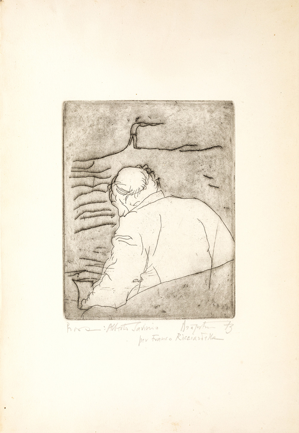 ALBERTO SAVINIO (Atene 1891-Rom 1952) FIGURA incisione P.D.A., cm 49x34. Sul fronte reca firma, numerazione e dedica.