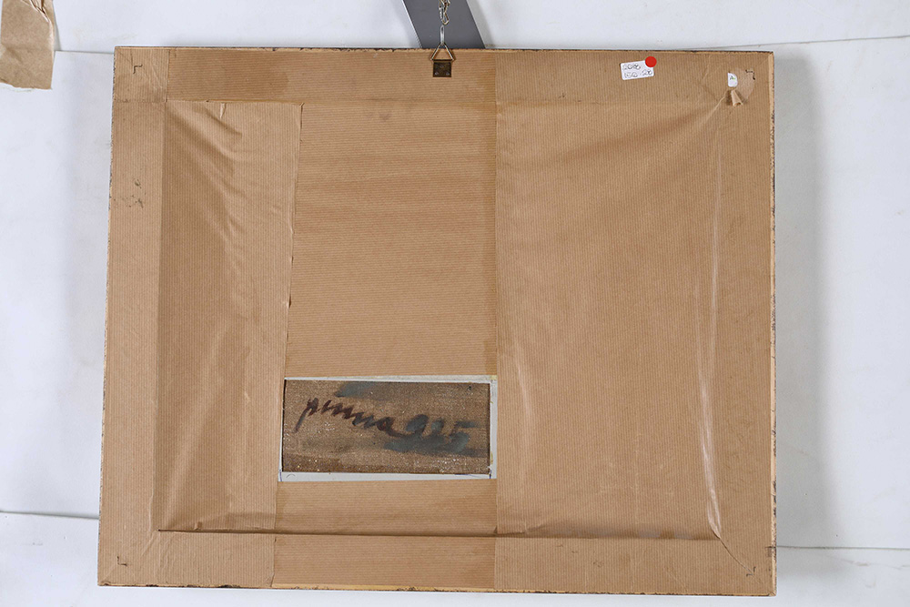 GIORGIO PINNA (Catanzaro 1888-Pianopoli 1989) PAESAGGIO FLUVIALE olio su tela, cm 27,5x38,5. Firma e data sul retro "Pinna 935". Provenienza collezione Alderighi, Roma