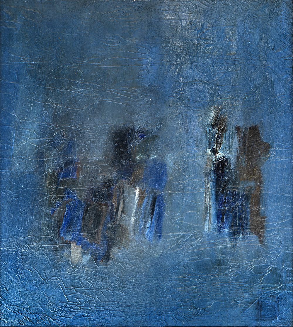 PIERO SADUN (Siena 1919-Roma 1974) DIALOGO N°1 olio su tela, cm 104x95. Firma sul fronte. Opera realizzata nel 1960. Sul retro titolo ed etichetta della 55° Biennale Nazionale d'Arte di Venezia. L'opera è pubblicata sul catalogo della relativa Biennale a pagina 85. Provenienza Collezione Privata, Roma