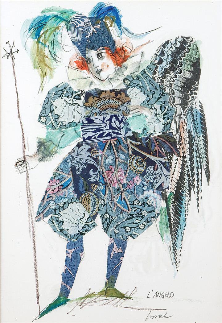 LUZZATI EMANUELE "L'angelo" 45x32 tecnica mista su carta Opera firmata in...