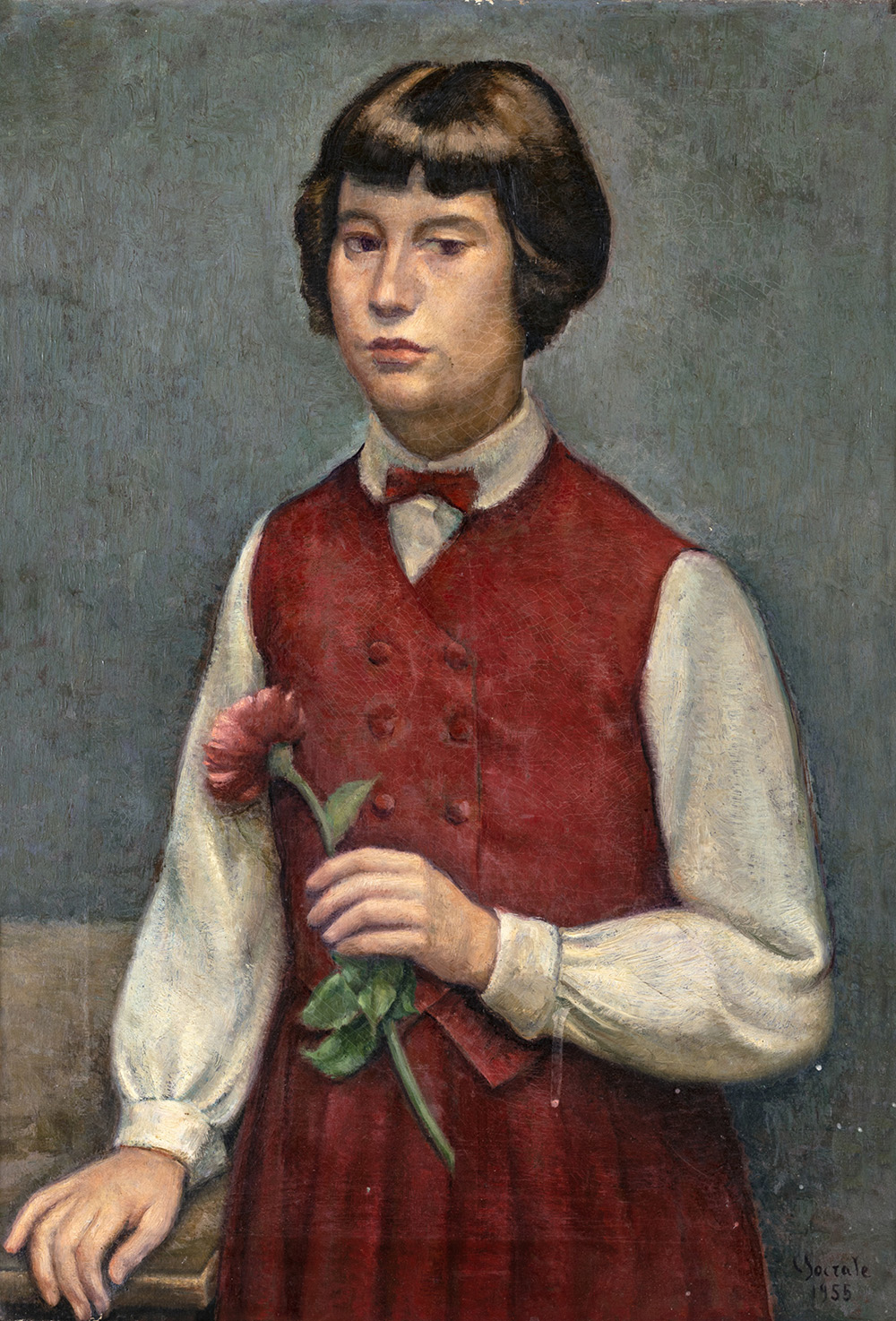 CARLO SOCRATE (Mezzanabigli 1889-Roma 1967) RITRATTO DI MARIA LETIZIA ALDERIGHI olio su tela, cm 80,5x55,5. Firma e data in basso a destra "C.Socrate 1955". Provenienza Collezione Alderighi, Roma