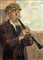 VITTORIO CASETTI (Rovereto 1891-Rovereto 1977) IL SUONATORE ALPINO olio su tavola, cm 34x25,5. Provenienza Collezione fratelli Pilati, Trento.