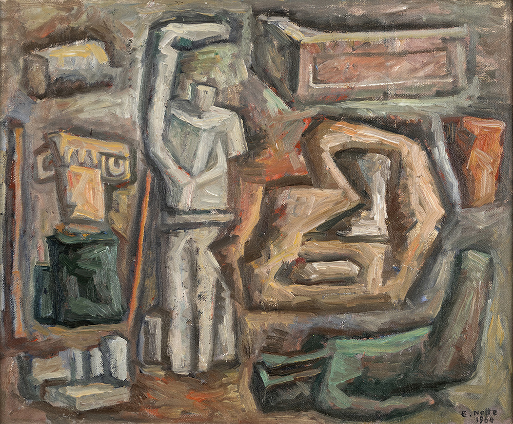 EMILIO NOTTE (Ceglie Messapica 1891-Napoli 1982) NATURA MORTA olio su tela, cm 50x60. Firmato e datato in basso a destra "E. Notte 1964".