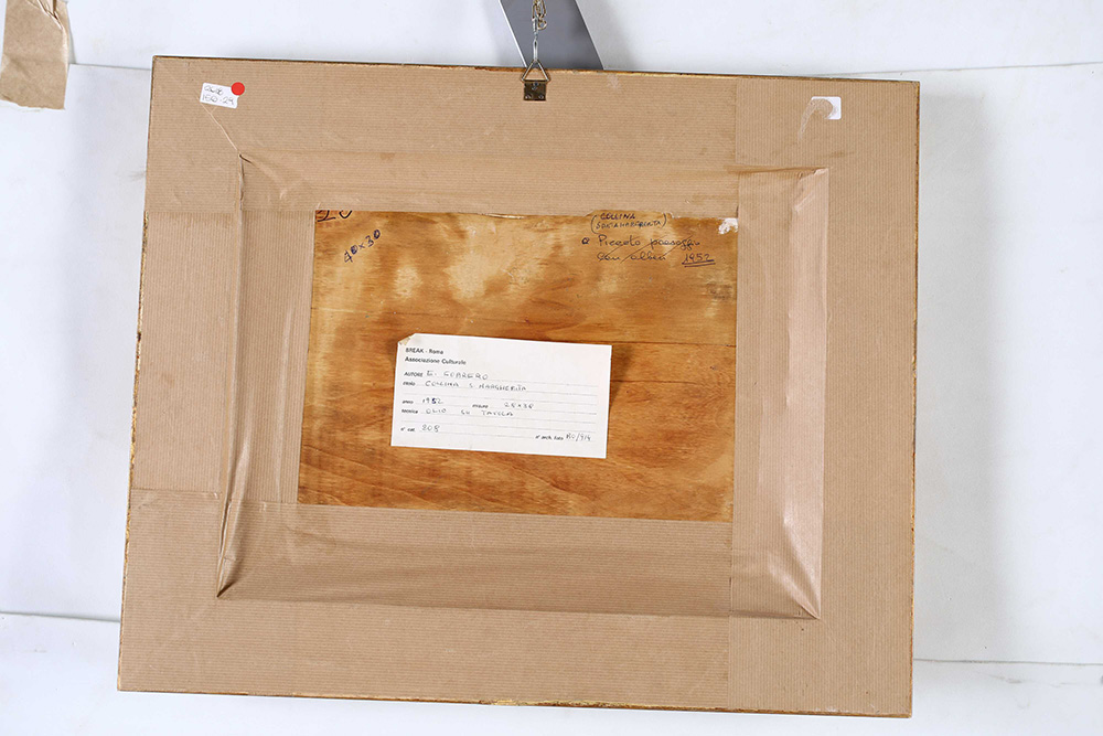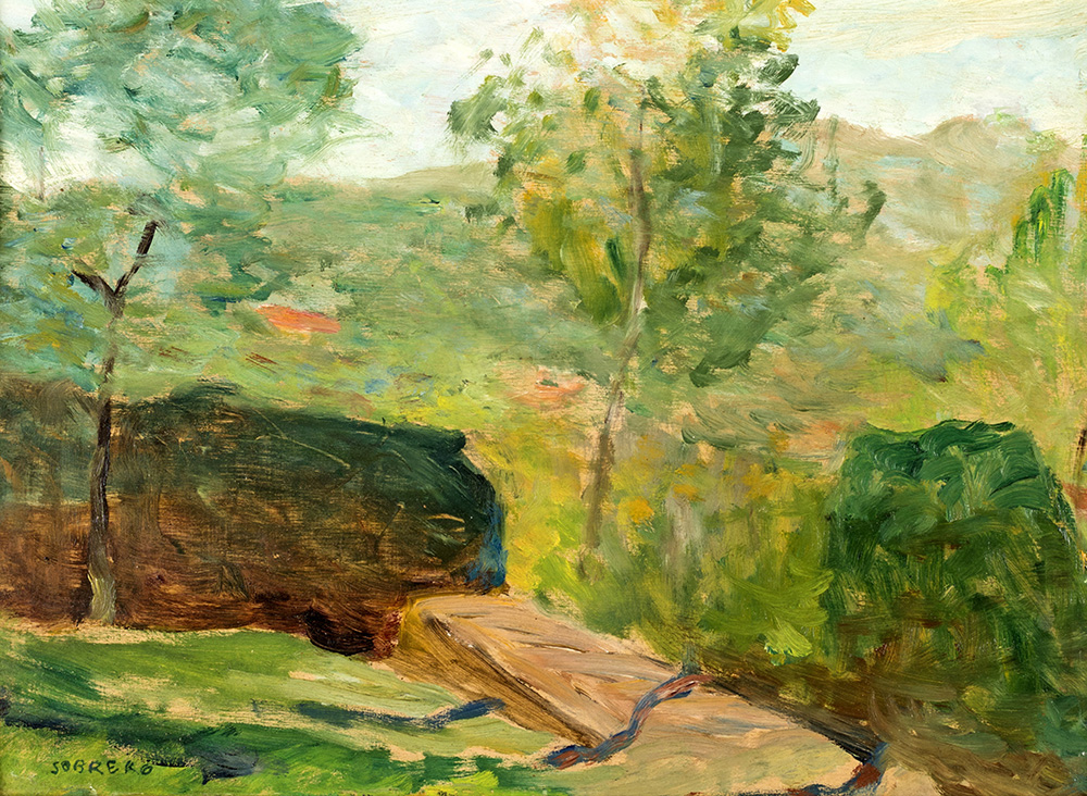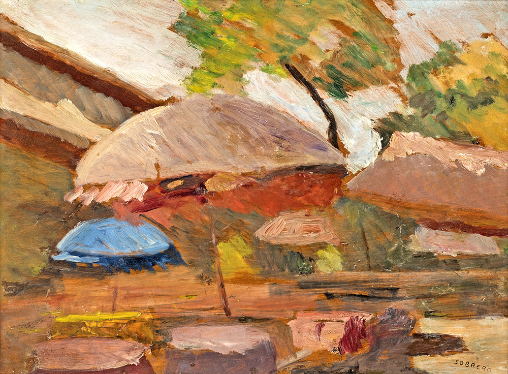 EMILIO SOBRERO (Torino 1890-Roma 1964) LOTTO DI DUE DIPINTI DI EMILIO SOBRERO collina Santa Margherita, Olio su tavola, cm 28x38. Opera eseguita nel 1952. Firma in basso a sinistra "Sobrero". Al retro cartiglio dell'associazione culturale BREAK - Roma. Caffè al Pincio, Olio su tavola, cm 27x37. Opera eseguita nel 1930. Firma in basso a destra "Sobrero". Al retro cartiglio dell'Associazione Culturale BREAK - Roma. Provenienza Collezione Alderighi