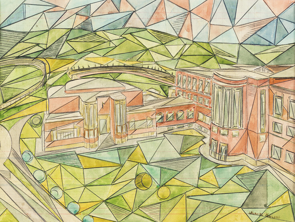 UBERTO BONETTI (Viareggio 1909-Viareggio 1993) FORO MUSSOLINI tecnica mista su carta, cm 29x38.5, Firmato in basso a destra Uberto Bonetti. Opera eseguita nella seconda metà degli anni '30. Certificato di autenticità su fotografia rilasciato da Adriana Bonetti.