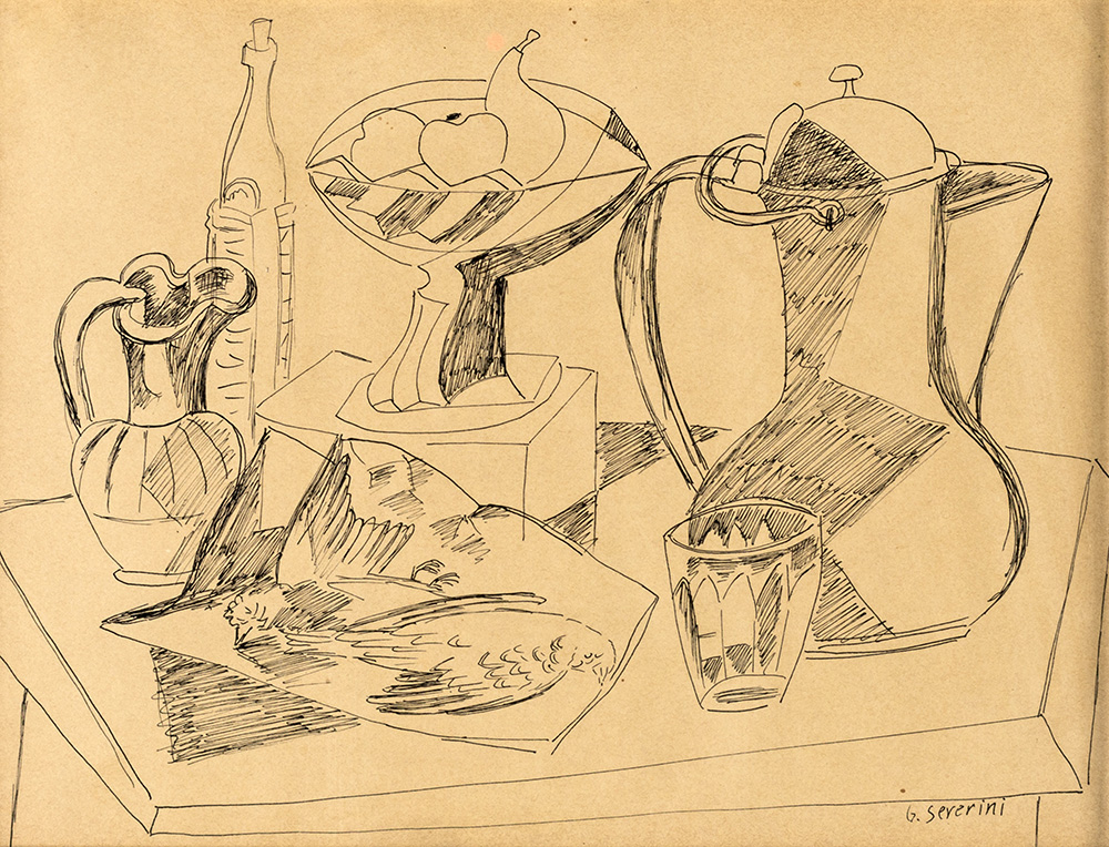 GINO SEVERINI (Cortona 1883-Parigi 1966) NATURA MORTA CON BROCCA china su carta cm 21x28 firma in basso a destra G.Severini. Provenienza Christie's, Asta numero 147 del 1988. Collezione Alderighi, Roma