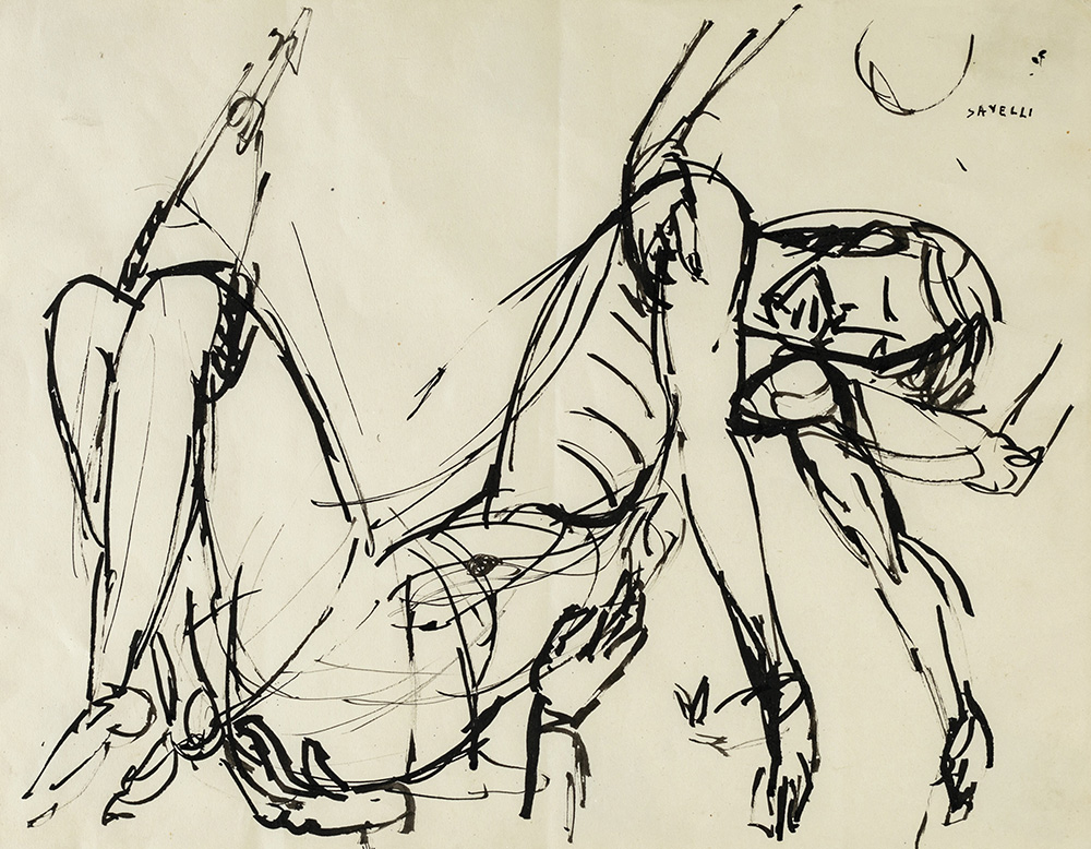 ANGELO SAVELLI (Pizzo 1911-Brescia 1995) FIGURA china su carta, cm 36x28. Firma "Savelli" sul fronte.