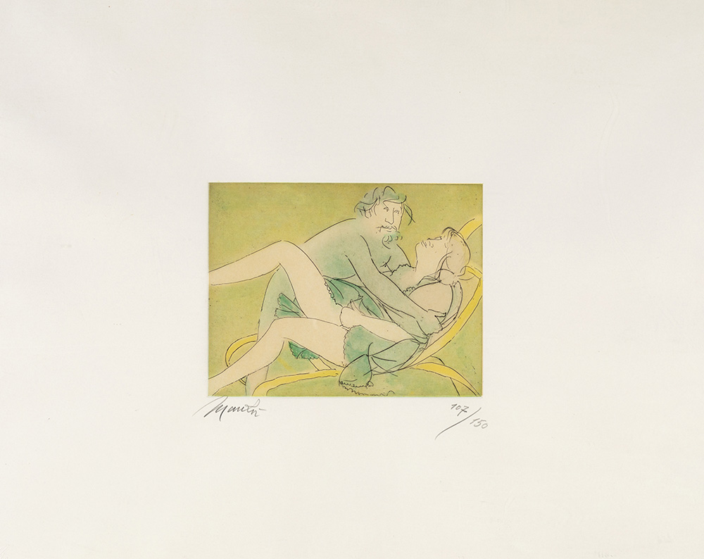 GIACOMO MANZÙ (Bergamo 1908-Roma 1991) AMANTI litografia, cm 17,4x22,3. Firma...