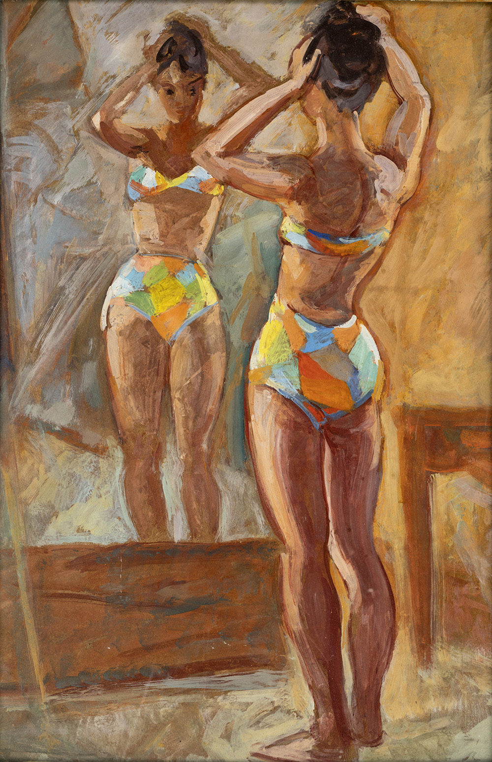 NINO BERTOLETTI (Roma 1869-Roma 1971) FANCIULLA ALLO SPECCHIO olio su masolite, cm 100x70. Opera eseguita negli anni '50. Certificato di autenticità su foto.