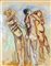 FAUSTO PIRANDELLO (Roma 1899-Roma 1975) BAGNANTI pastelli e matita su carta, cm 28x22. Firma sul fronte "Pirandello". Sul retro timbro della Galleria Zanini (Roma) e della Galleria Giosi (Roma). L'opera fu comprata presso la galleria Querinas (Roma) in occasione della mostra "Pirandello, opere dal 1929 ad oggi, 52 dipinti ad olio e 20 pastelli".