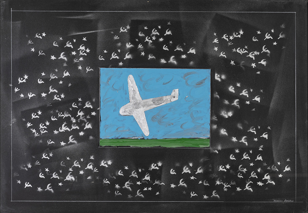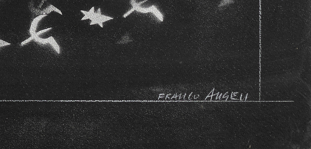 FRANCO ANGELI (Roma 1935-Roma 1988) SENZA TITOLO tecnica mista (Olio, pastello, spray e tela applicata su cartone) cm 70x99,5. Firmato Franco Angeli in basso a destra. Opera in corso di archiviazione presso l'Archivio Franco Angeli, Roma.