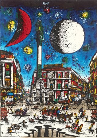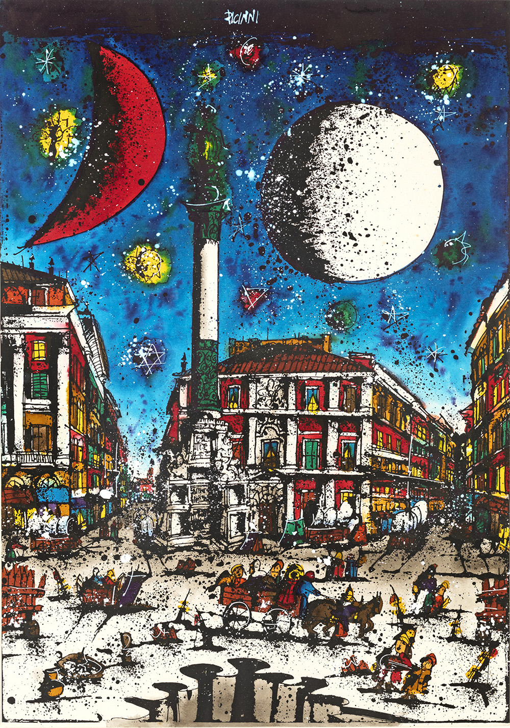 GENNARO PICINNI (Bari 1933) L'IMMACOLATA tecinca mista su cartoncino, cm 70x50. Firmato in alto al centro Picinni