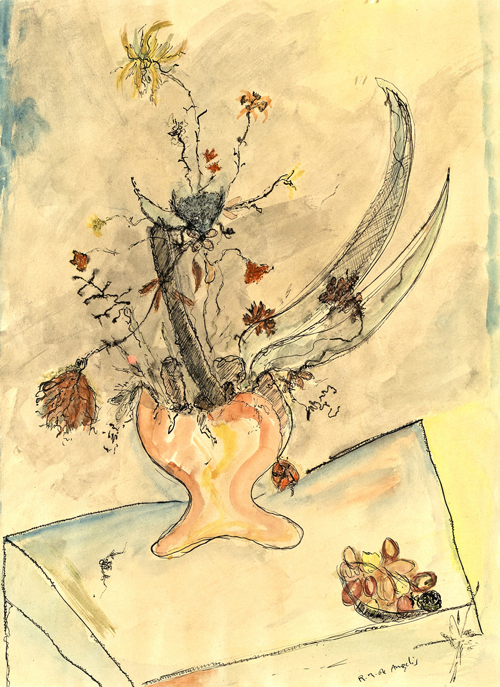 RODOLFO DE ANGELIS (Napoli 1893-Milano 1965) VASO DI FIORI disegno acquerello, 32x23 cm. Firma in basso a destra. provenienza collezione Alderighi