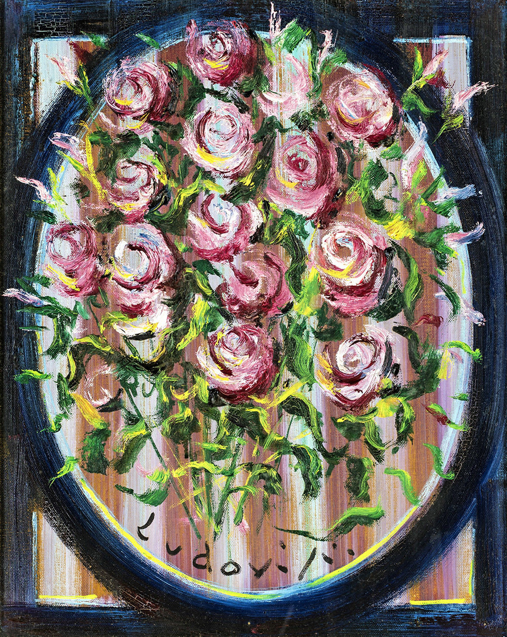 FELICE LUDOVISI (1917- 2012) LE MIE ROSE, LE SUE ROSE olio su tela, cm 51x40. Firma sul fronte "ludovisi".