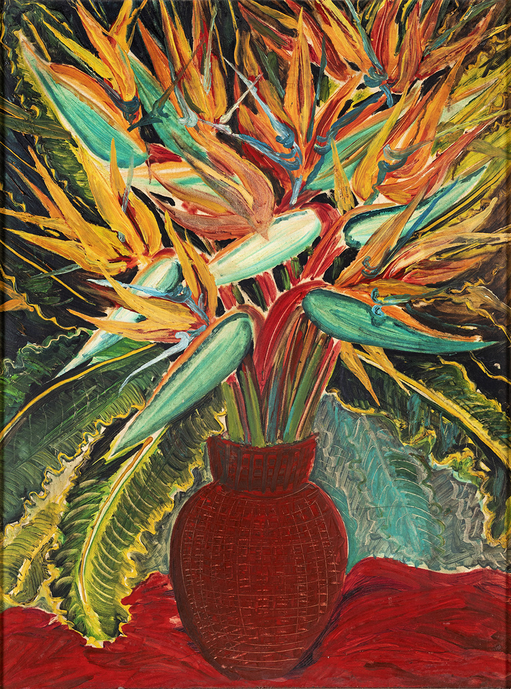 PITTORE DEL XX SECOLO () VASO ROSSO CON FIORI olio su tela, cm 80x60.