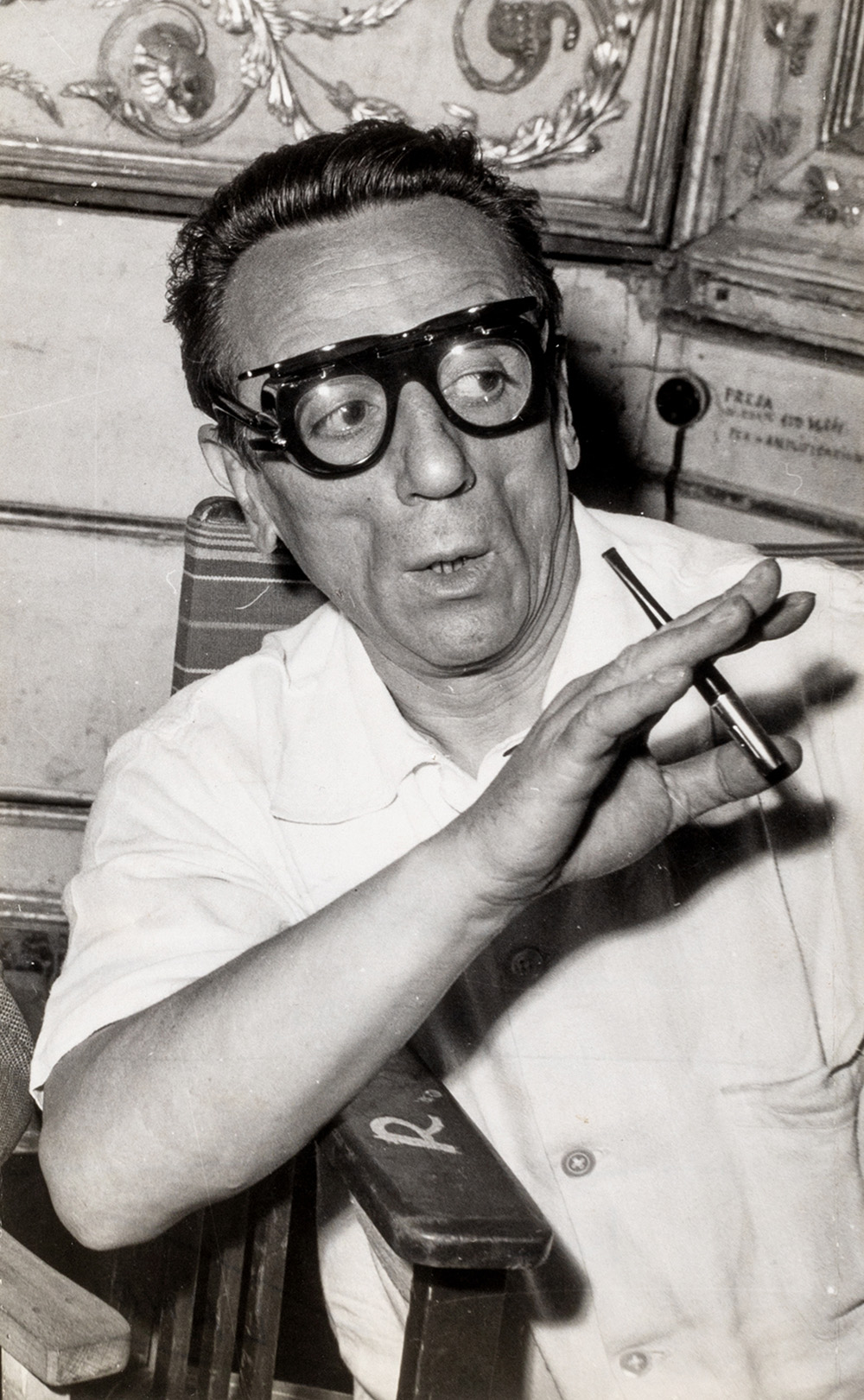 GIOVANNI BATTISTA POLETTO (Roma 1915-Roma 1988) EDUARDO DE FILIPPO sul set di "Questi Fantasmi", Stampa alla gelatina ai sali d'argento, cm 18x11. Sul retro reca timbro dell'autore.