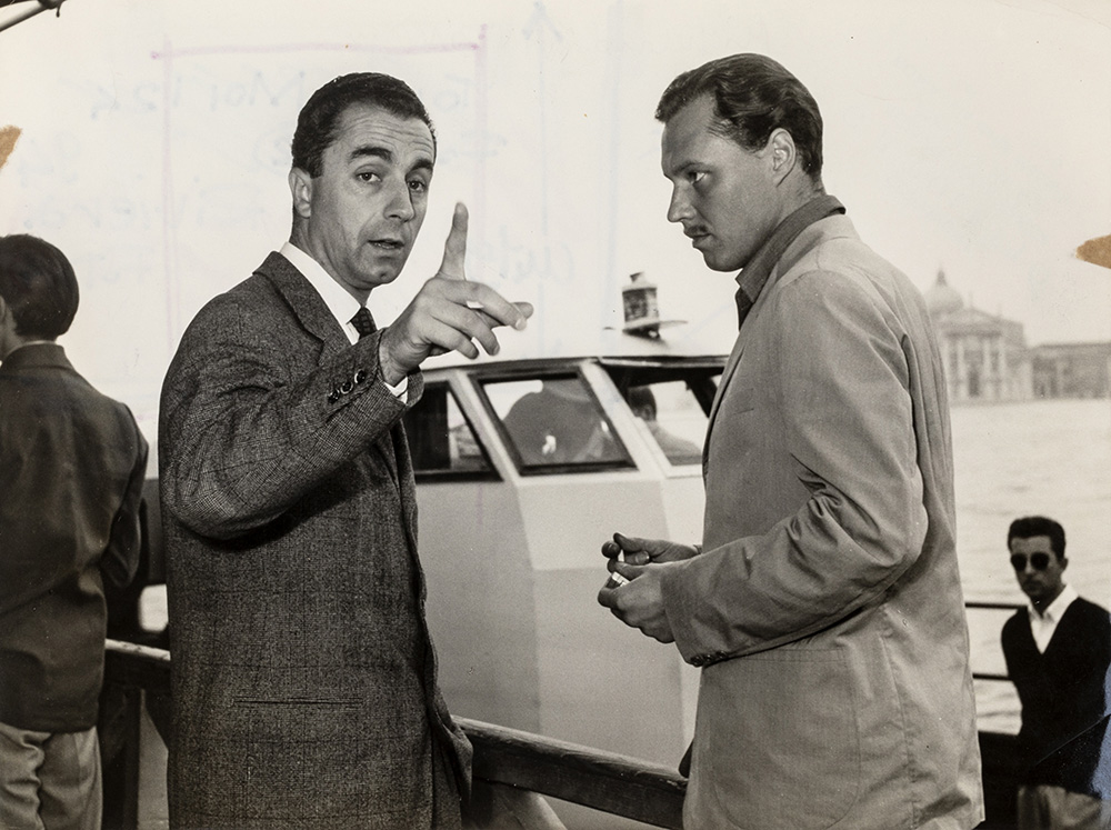GIOVANNI BATTISTA POLETTO (Roma 1915-Roma 1988) FOTO RITRAENTE MICHELANGELO ANTONIONI A VENEZIA stampa alla gelatina ai sali d'argento, cm 18x24. Reca sul retro timbro dell'autore.