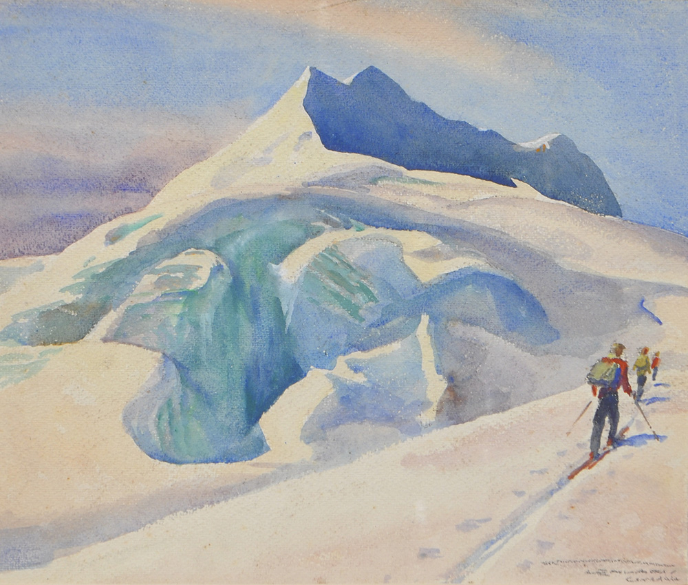 Lot 261 | Franz Lenhart Sci alpinista sul Cevedale;Acquerello, 39 x 45,5 cm, in cornice...