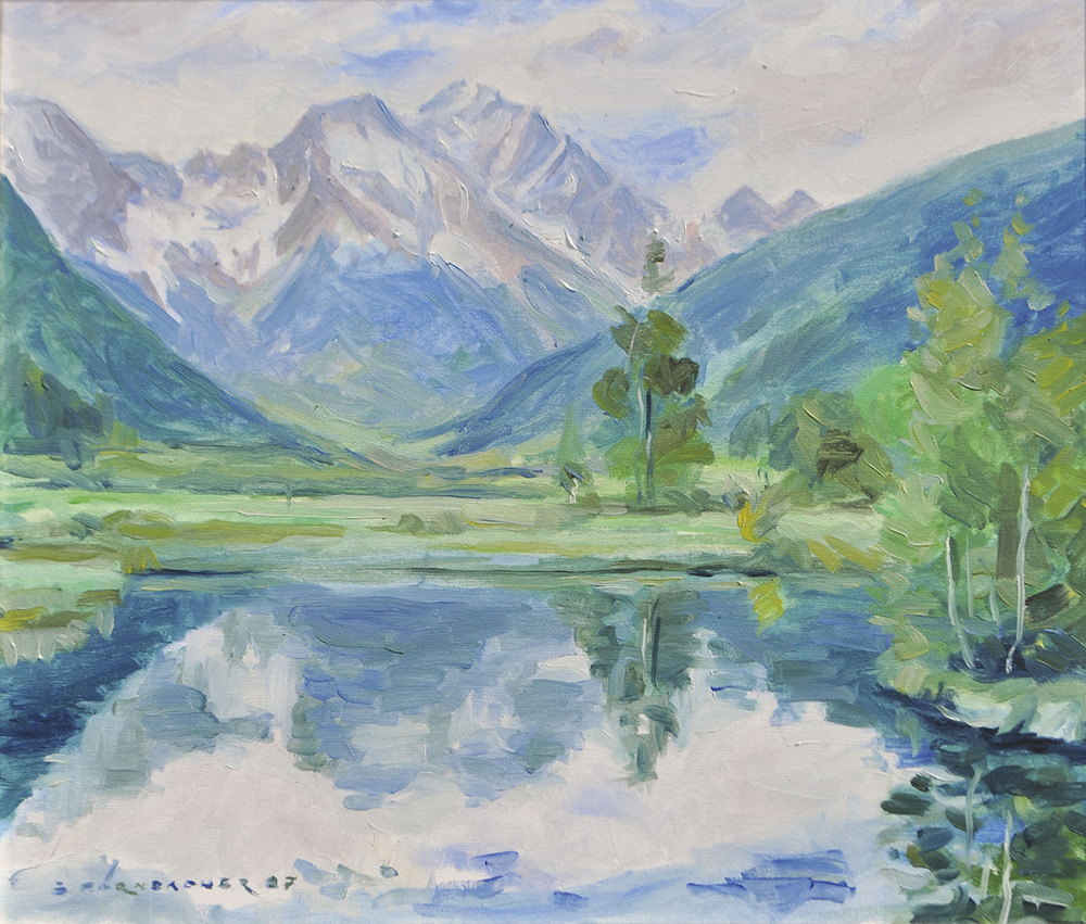 Siegfried Pörnbacher (Olang/Valdaora 1914 – Bruneck/Brunico 2006) Lago di Braies, 1987;Olio su tela, 60 x 70 cm, in cornice