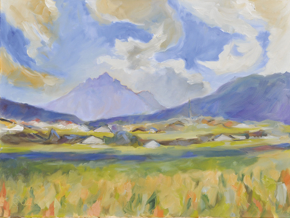 Oswald Köberl (Innsbruck 1931 – 2016) Blick auf Patsch und die Serles, 2002;Olio su tela, 60 x 80 cm