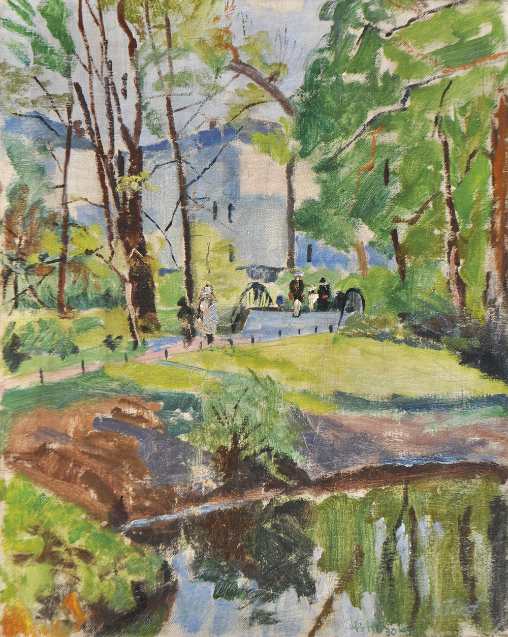Edmund Fürst (Berlin/Berlino 1874 – Tel Aviv 1955) Parco, 1930;Olio su tela, 51,5 x 39,5 cm