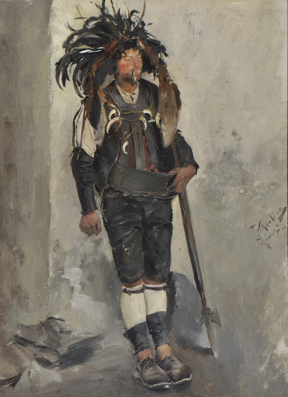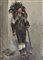 Franz Skarbina (Berlin/Berlino 1849 – 1910) Custode dei vigneti meranese (Saltner), 1871;Olio su cartone, 34 x 26 cm, in cornice