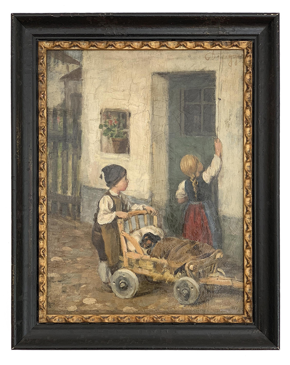 Franz von Defregger (Stronach, Osttirol 1837 – München/Monaco di Baviera 1921) Il bassotto malato, 1890;Olio su tela, 30 x 23 cm, in cornice