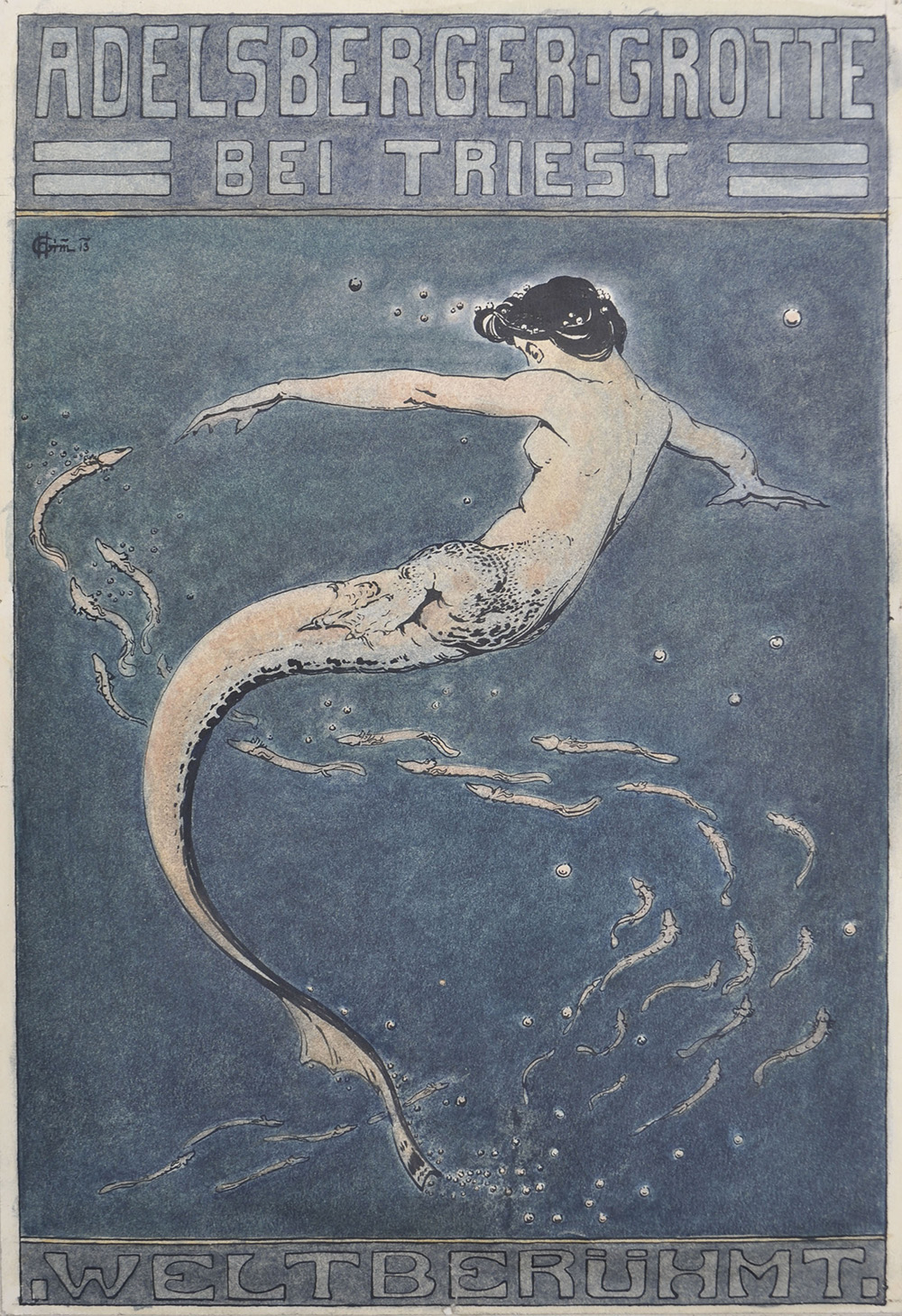 Hugo Grimm (Feldkirch 1866 – Kitzbühel 1944) Bozzetto per manifesto “Adelsberger Grotte bei Triest – weltberühmt“,1913;China e acquerello su carta montata su cartone, 43,3 x 29,7 cm