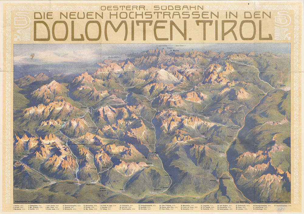 Gustav Jahn (Wien/Vienna 1879 – Ödsteinkante 1919) Manifesto “K K Oesterr. Südbahn – K K Österr. Staatsbahnen, 1907 ca;– Tirol Ortler Gardasee“,