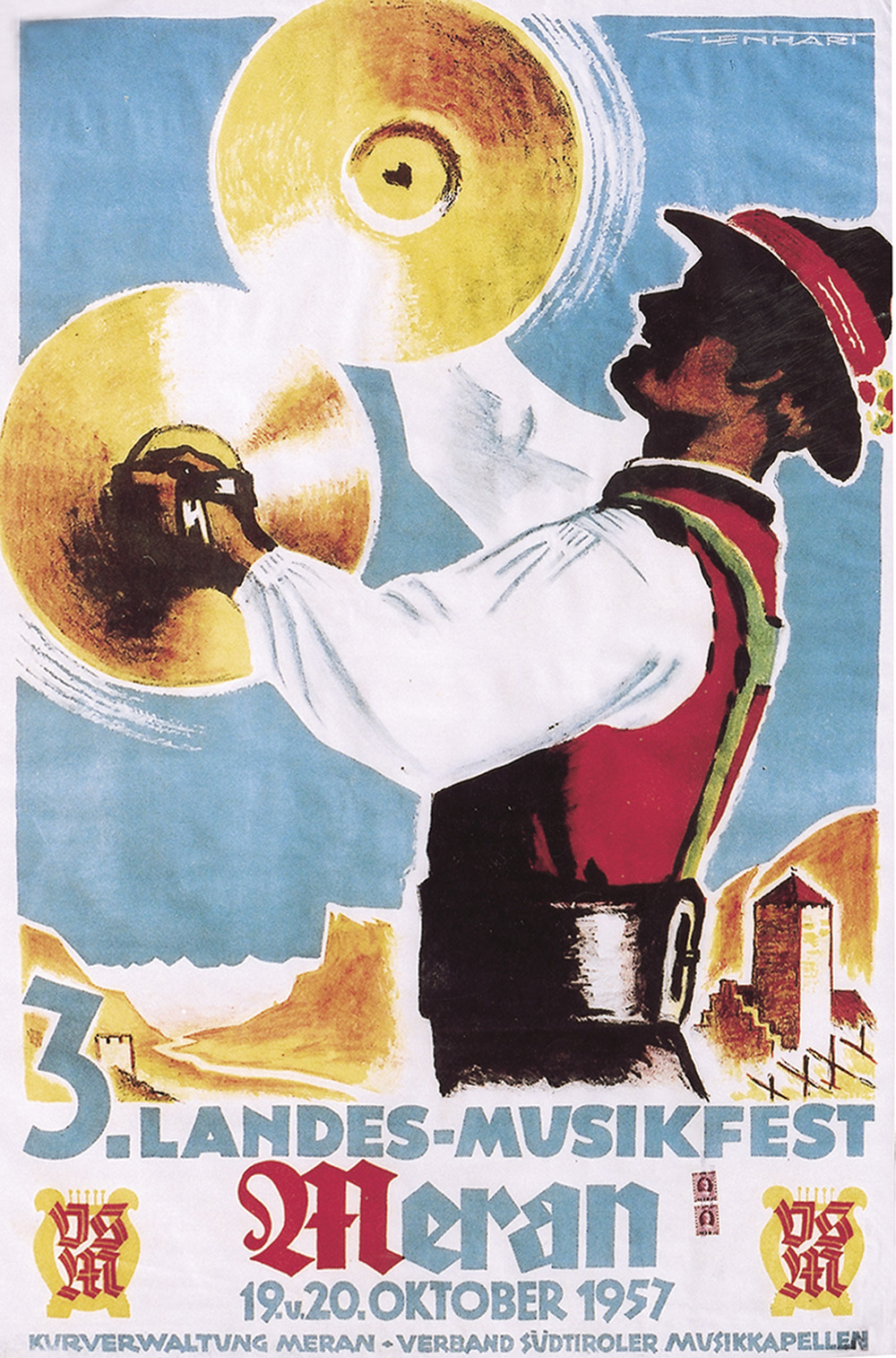 Franz Lenhart Manifesto “3. Landes-Musikfest Meran 1957“;Litografia, 98 x 67...