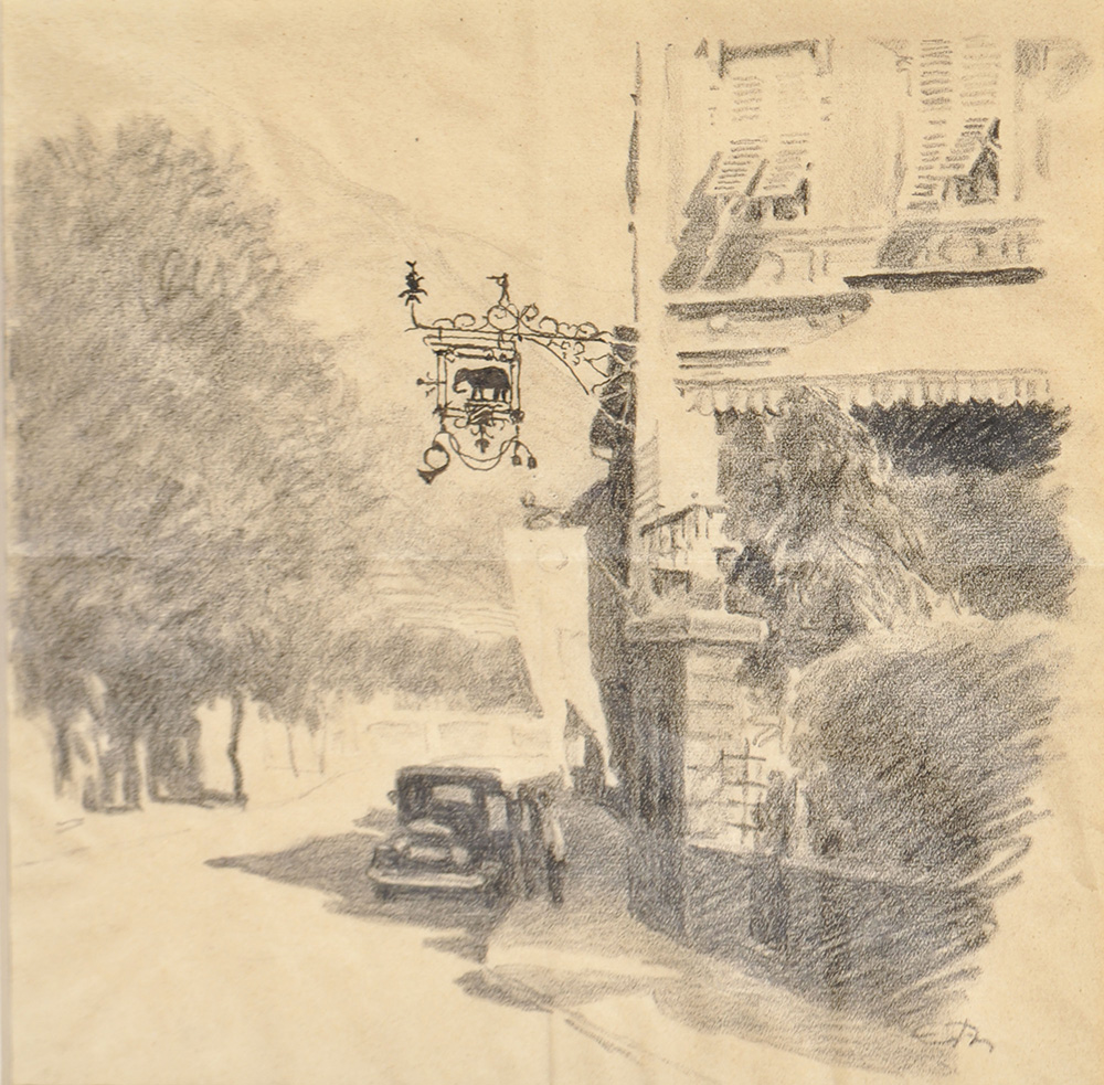 Eduard Thöny L‘“Elefante“ a Bressanone, anni 1930;Gessetti, china, 20 x 20...
