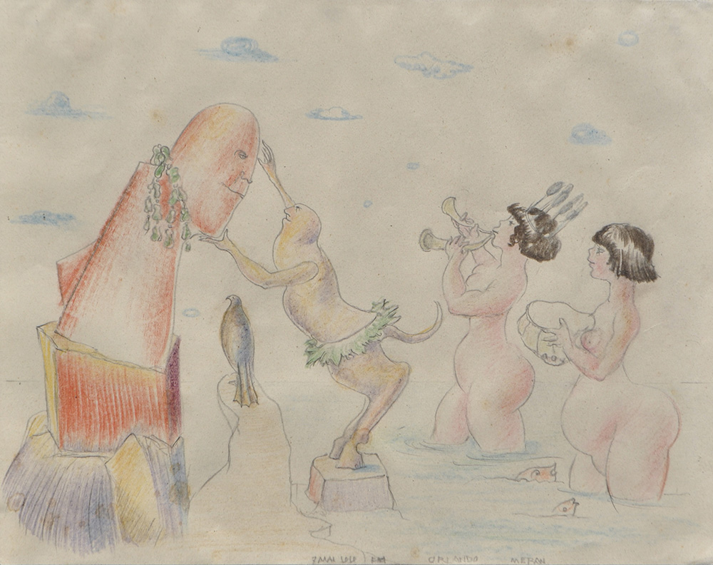 Fritz von Herzmanovsky-Orlando L’ultimo ritocco – Il compimento, 7.5.1919;Matita, matite colorate, 20 x 25 cm, in cornice