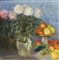 Josef Julius Durst Natura morta con astri e frutta;Olio su tela, 88,5 x 88,5...