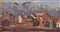 Josef Telfner (Meran/Merano 1874 – Gufidaun/Gudon 1948) Villaggio in Alto Adige davanti a paesaggio alpino (Gudon?);Olio su cartone, 27,5 x 49 cm, minimali scheggiature di colore,