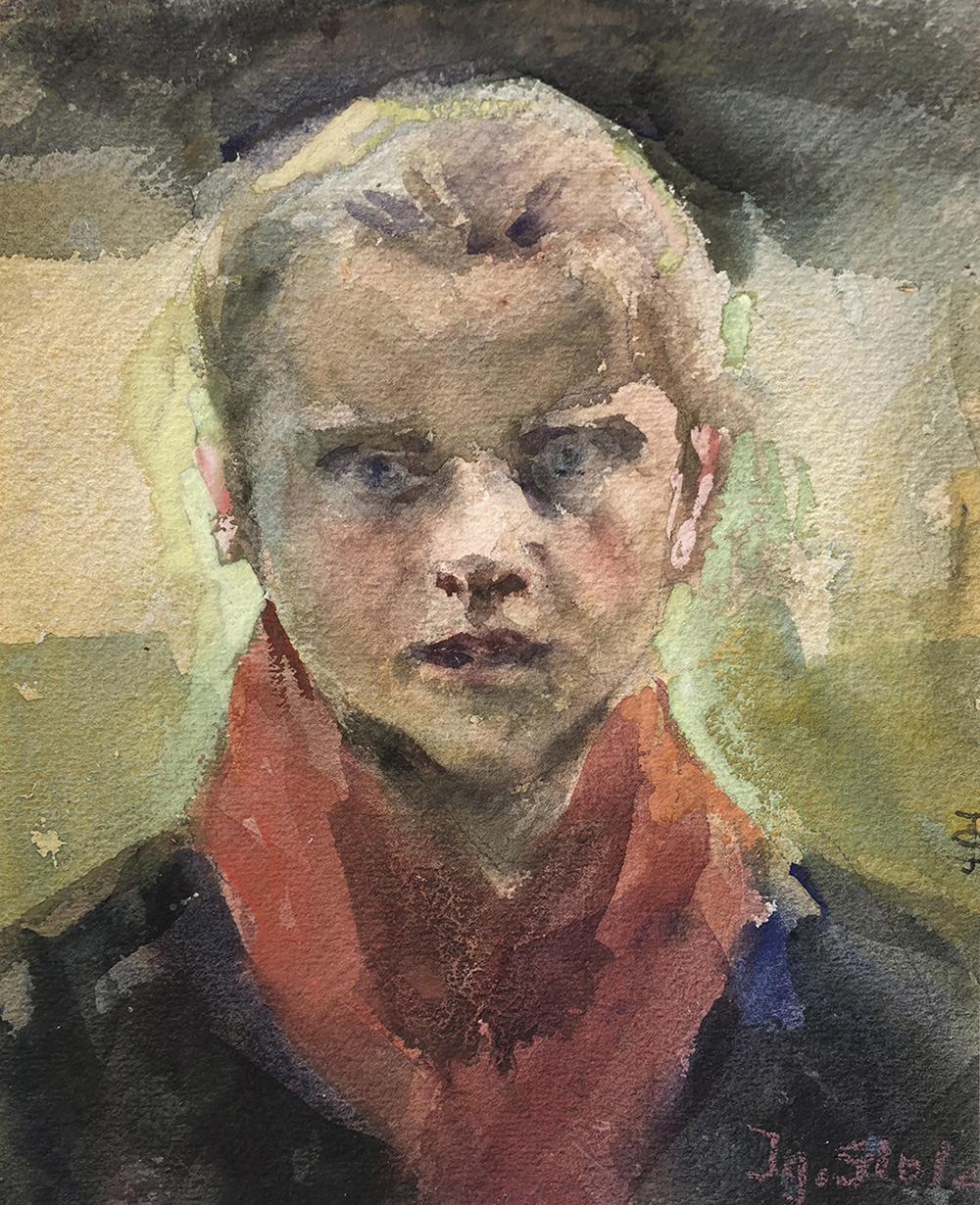Lot 372 | Ignaz Stolz Ragazza con foulard rosso;Acquerello, 25 x 19 cm, in cornice Firma